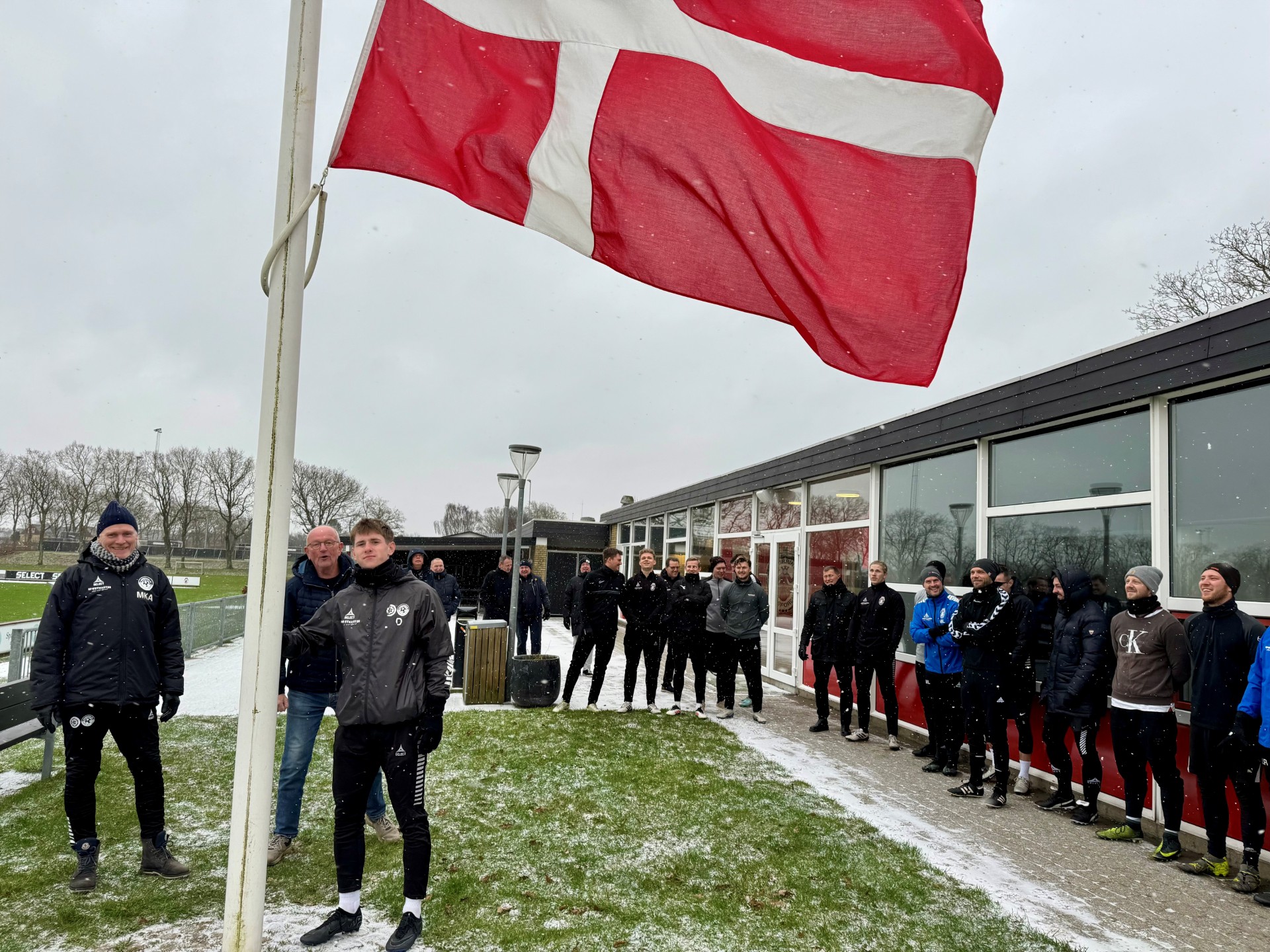 Unge og gamle seniorer var mødt op til en kold omgang fodbold og en varm omgang suppe i klubhuset ved standerhejsning lørdag d. 24. januar.